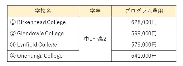 上記料金は学校の料金改定、為替レート等の関係で変更になる可能性がございます。