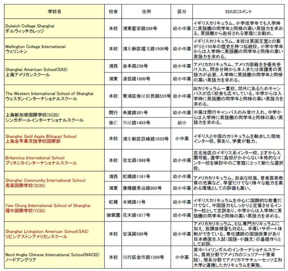 上海市内のインター校<小学校> 上海のインター校事情 上海のインター校事情についての詳細は こちらをご参考ください。 上海のインター校選び 上海のインター校について最新情報を入手されたい場合は、学校選択サポートにて、アドバイスを差し上げていますので、ぜひご活用ください。 上海在住のご家庭はこちら 赴任前のご家庭はこちら